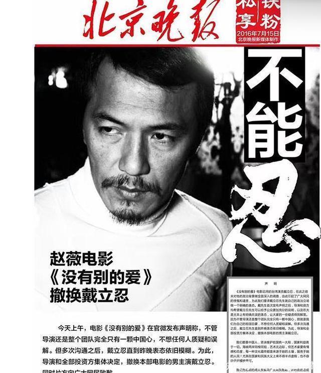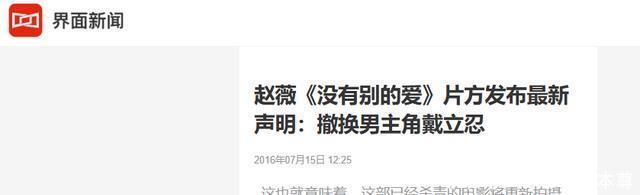 界面新闻(赵薇《没有别的爱》片方发布最新声明:撤换男主角戴立忍2016.07.15)