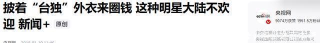 参考链接 央视网(披着“台独”外衣来圈钱这种明星大陆不欢迎新闻+2018.01.10)